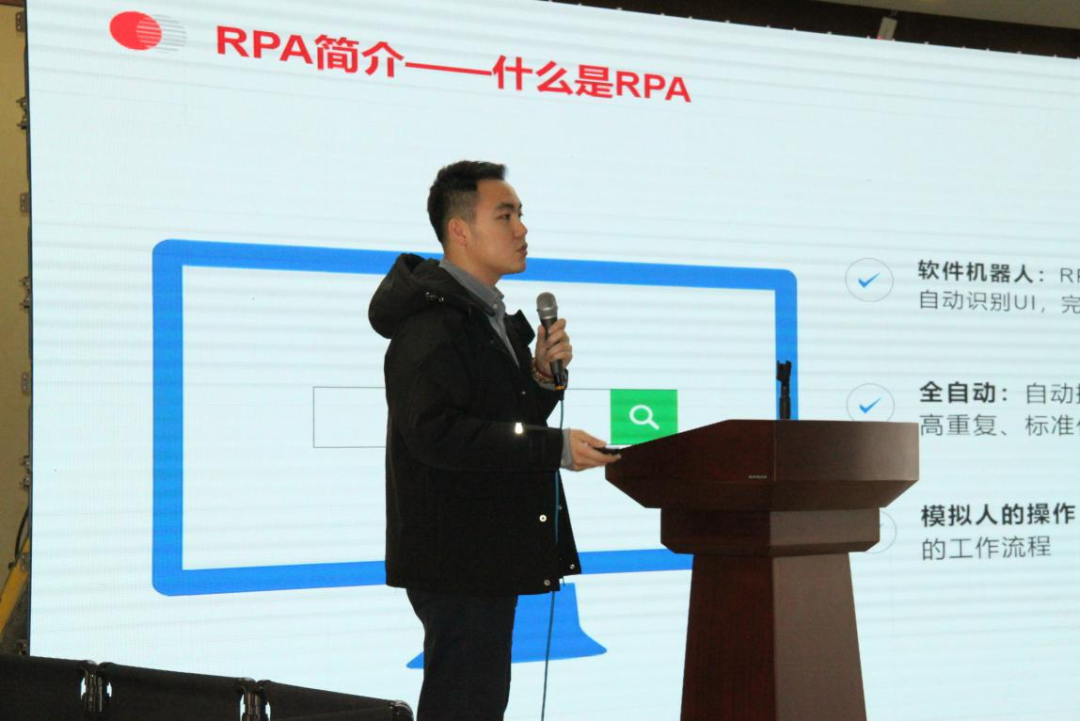 RPA机器人咨询顾问孙老师为大家介绍了用机器算法代替人工完成高重复、标准化、规则明确、大批量的手工操作的解决方案。RPA机器人目前在财税领域、人力资源等领域已应用广泛。通过使用RPA机器人,可以轻松实现流程的自动化,在提高工作准确性的同时,还能为企业管理带来灵活性和可扩展性。软件机器人易于训练,还能与任何系统进行无缝衔接,能够登录应用程序、移动文件及文件夹、复制及粘贴数据、填写表单、从文档中提取结构化和半结构化数据、抓取浏览器等,极大地提高工作效率。例如应用在财税领域、质保书下载整理、网站信息下载及系统录入更新、出库数据匹配等业务领域。