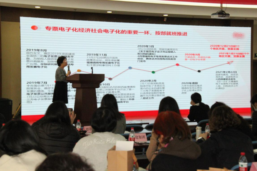 高级咨询专家王老师在会上介绍了专票电子化的最新政策要求,并针对政策要求企业该如何落地执行进行了方案分享。2021年2月22日国家档案局、财政部、商务部、国家税务总局四部委联合发布《进一步扩大增值税电子发票电子化报销、入账、归档试点工作的通知》,根据《公告》,自2020年12月21日起,在天津等11个地区的新办纳税人中实行专票电子化,这些地区开出的电子专票全国范围内皆可接收使用。